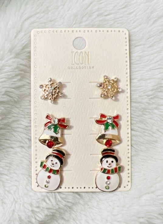 Get into the holiday spirit with our Snowmen/Bells/Snowflake Earrings! These festive studs are the perfect accessory to add some fun and flair to your outfit.