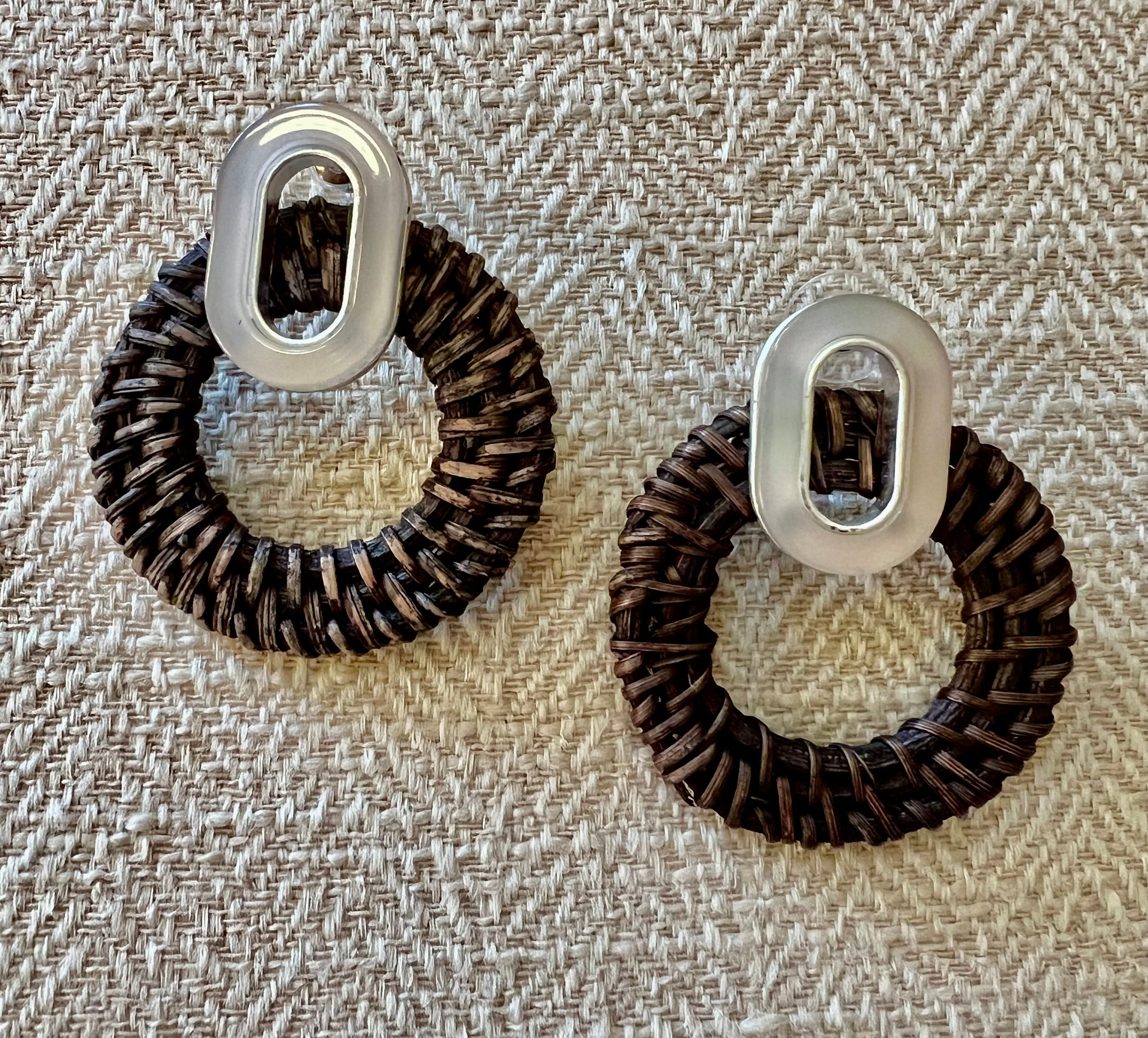 Crafted with both style and sustainability in mind, these Rattan/Acrylic Earrings in dark grey and dark brown are a versatile and lightweight staple for your wardrobe. Additionally, these earrings meet the necessary standards for lead compliance, making them not only fashionable but also safe for everyday wear.