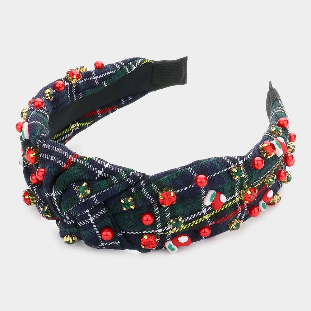 Christmas Socks Pearl Stone Embellished Knot Burnout Check Patterned Headband