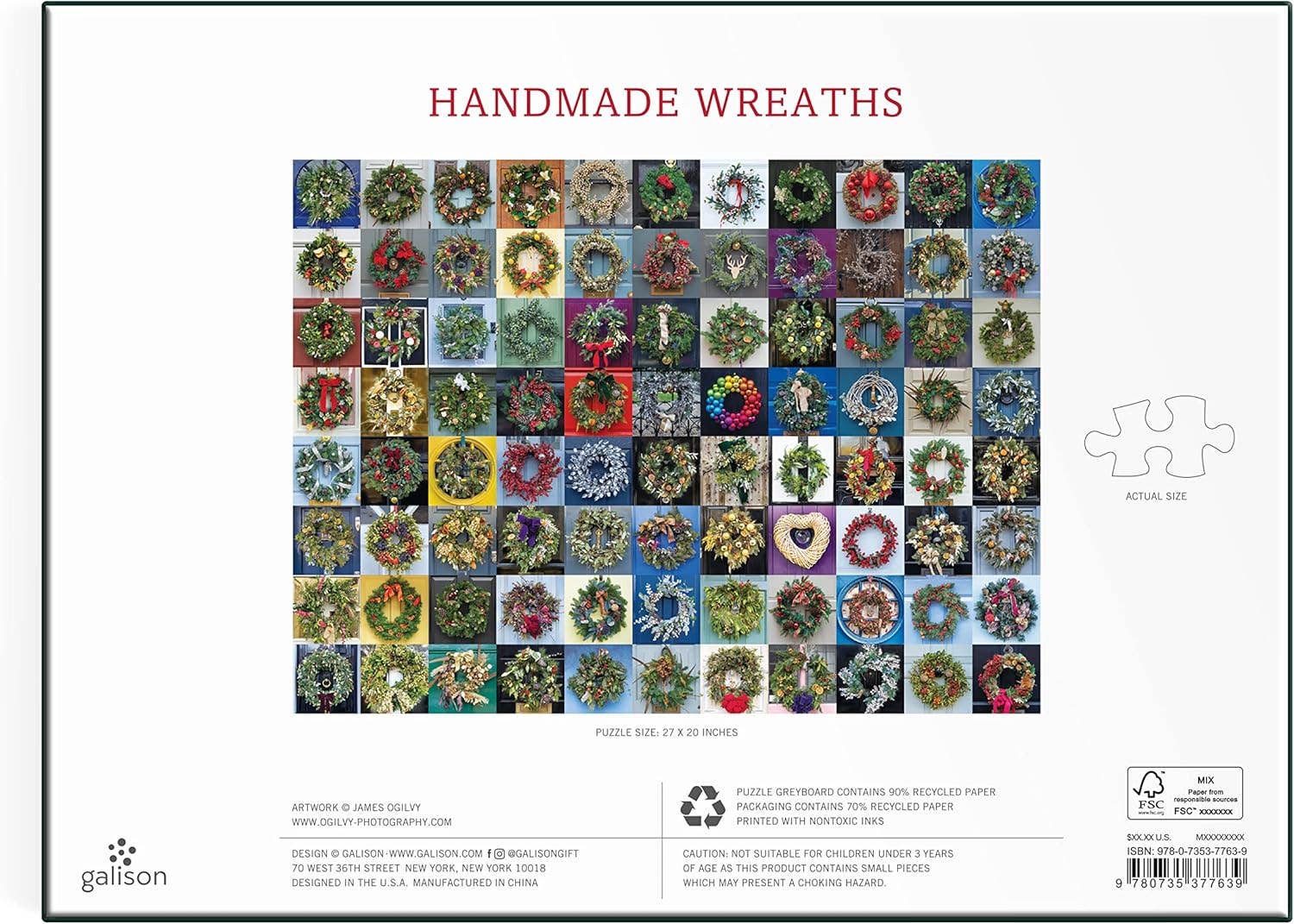 The Handmade Wreaths 1000 Piece Puzzle from Galison features 88 Christmas handmade wreaths photographed by UK photographer James Ogilvy. Galison puzzles are packaged in matte-finish sturdy boxes, perfect for gifting, reuse, and storage.