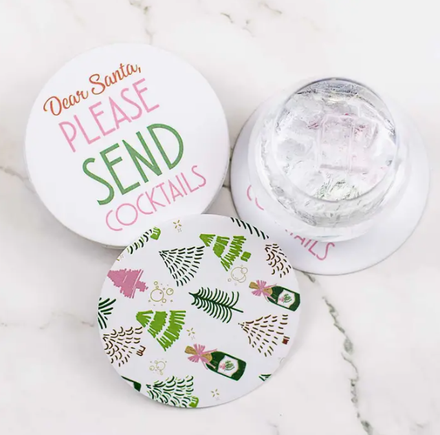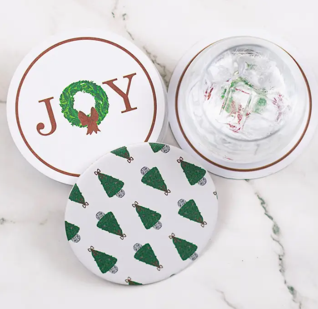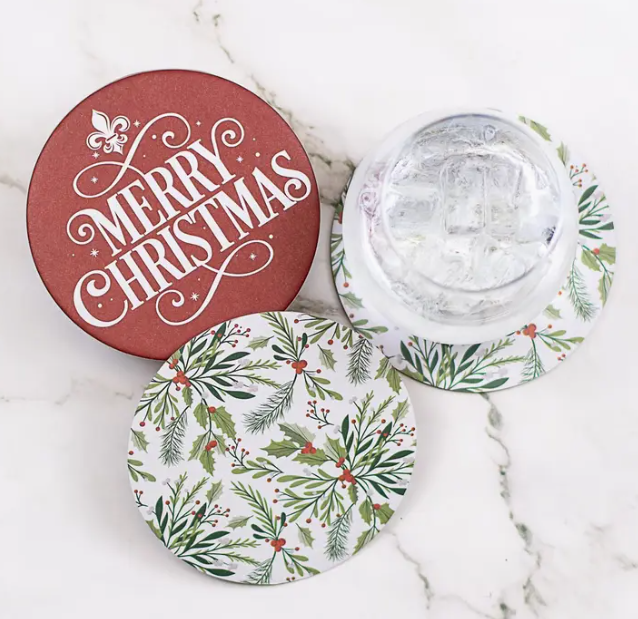Fun holiday coasters make for a great party! These 4X4 reversible coasters come in packs of 20.