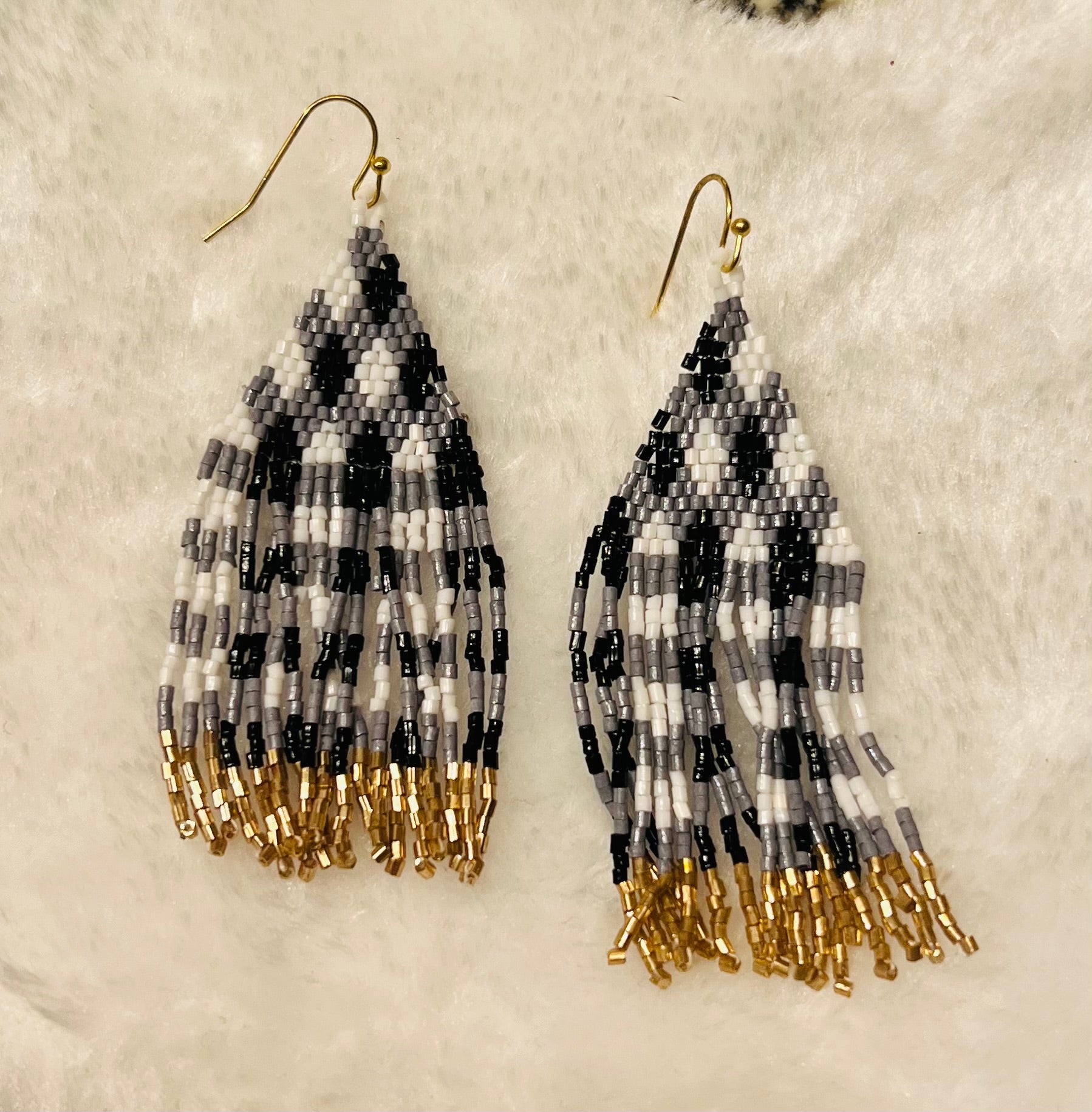 Complete your holiday look with our Christmas Seed Bead Fringe Earrings. The playful fringe design showcases a festive feel, while the seed bead material adds a touch of sparkle. Elevate your outfit with these expertly crafted, must-have earrings.