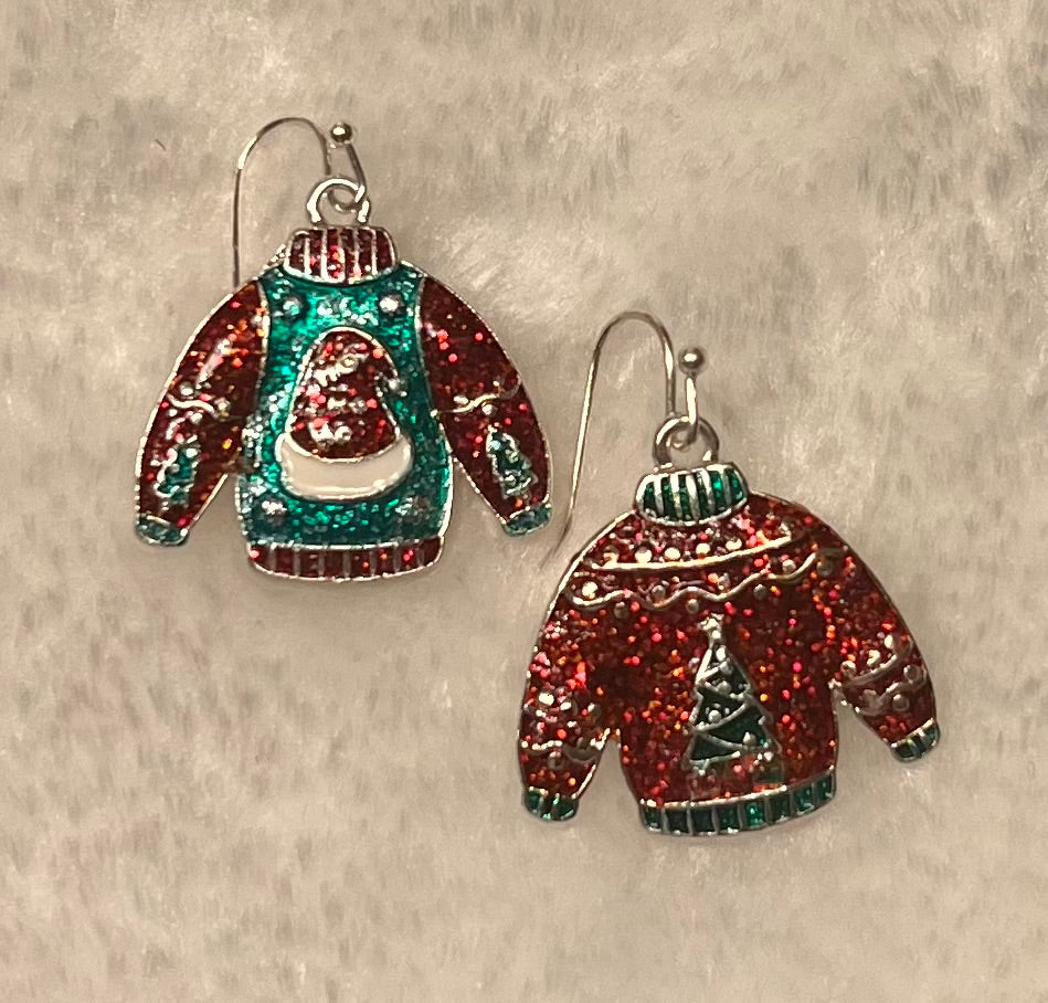 Mismatched ugly Christmas sweater dangle epoxy earrings