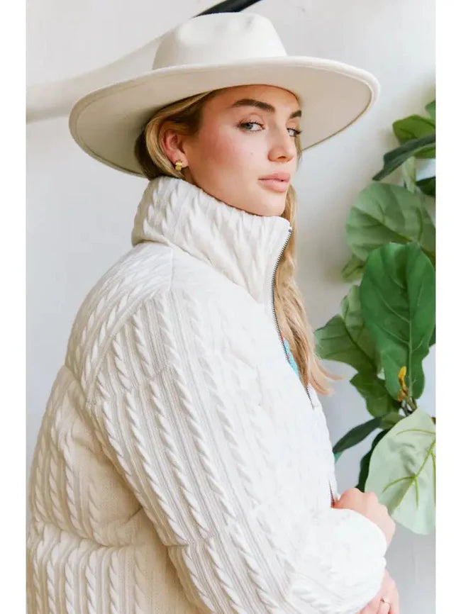 Ivory Cable Knit Puffer Jacket