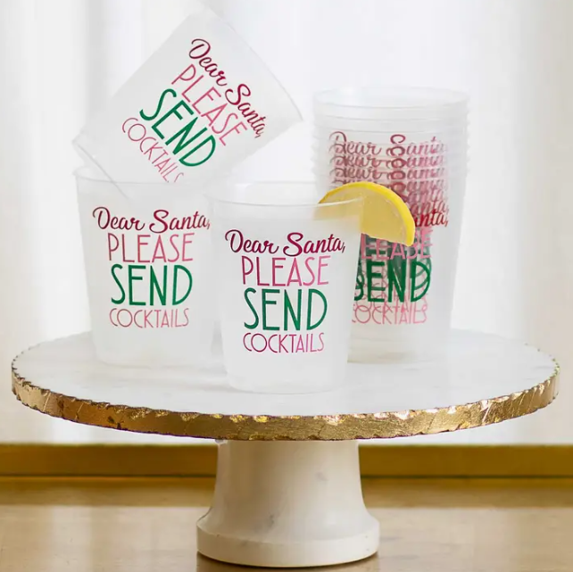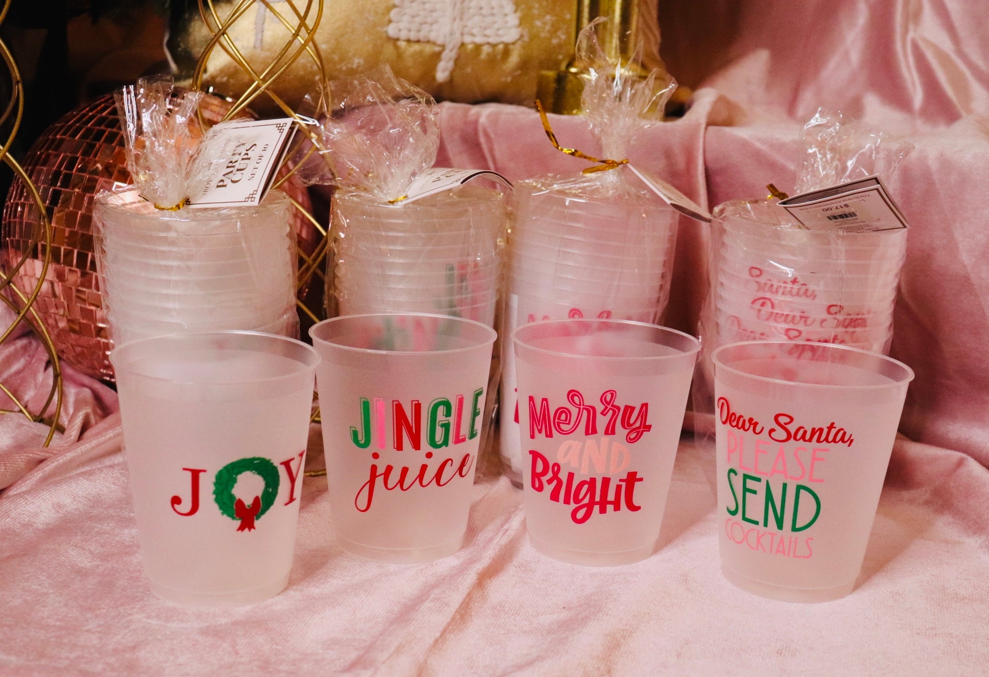 Bring some fun to your Holiday party with these festive frosted drink cups.