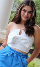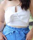 This adorable tube bow crop top is the perfect addition to your wardrobe.