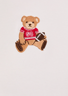 This off-white adorable baby tee, designed with short sleeves and a round neckline, displays a little embroidered football bear. It’s the perfect choice to cheer on game day with style and charm!