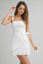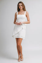 Embrace effortless femininity with our Meadow Eyelet Mini Dress. Crafted from delicate white cotton eyelet lace, this dress features intricate floral embroidery and geometric open-work detailing that feels both vintage-inspired and modern.
