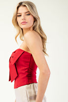 This tube top is solid and strapless, with a darling sweetheart neckline and a cute bow detail at the front. It's cropped and fitted and has a no-slip design. This would be perfect for holiday festivities.