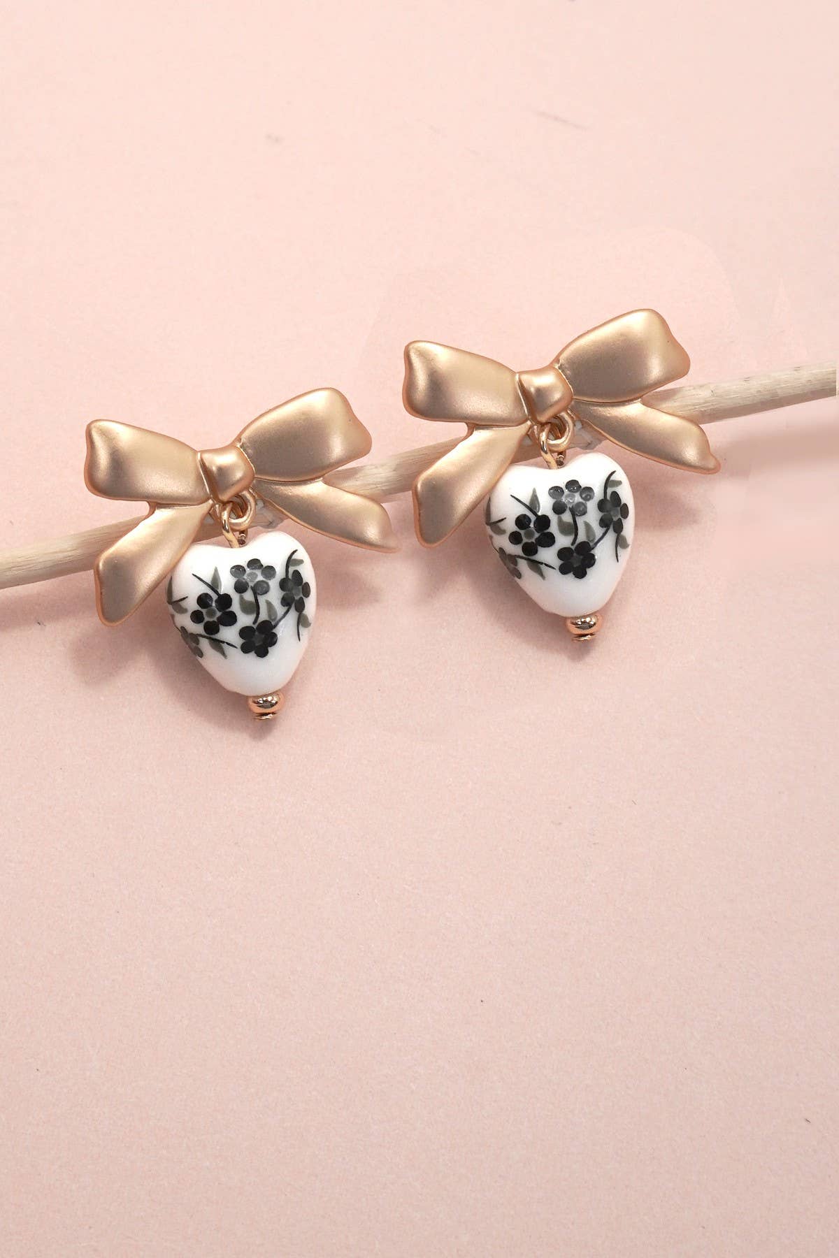 Vintage Porcelain floral Bow Stud Earrings blend timeless elegance with delicate charm. Featuring classic porcelain with floral Bow Drop Earrings. These earrings offer a sophisticated, vintage-inspired look.